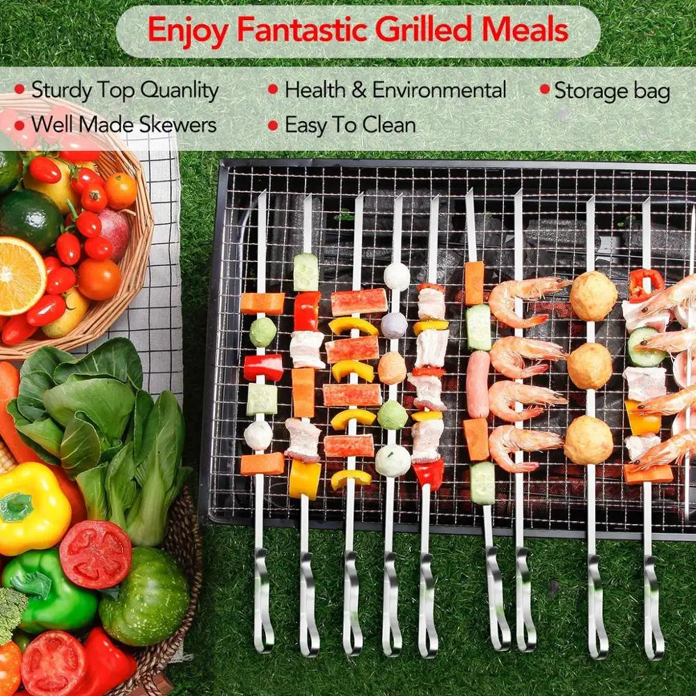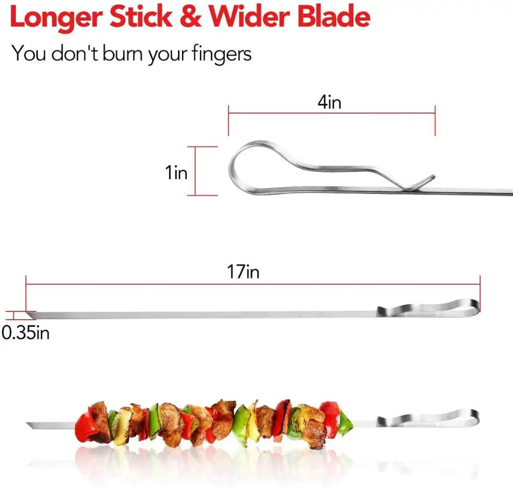 Spiedino per barbecue in acciaio inossidabile riutilizzabile, piatto, da 17 pollici