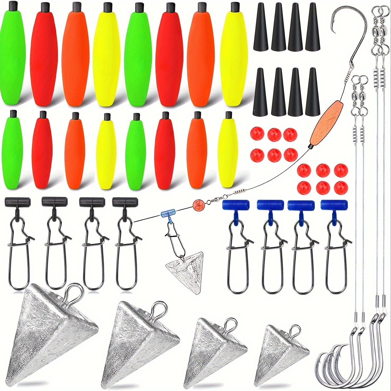 Kit da pesca in acqua salata da 78 pezzi: ami di alta qualità, galleggianti resistenti, pesi regolabili, kit completo per la pesca in spiaggia per pescatori principianti e professionisti, perfetto per catturare pesci di grandi dimensioni.