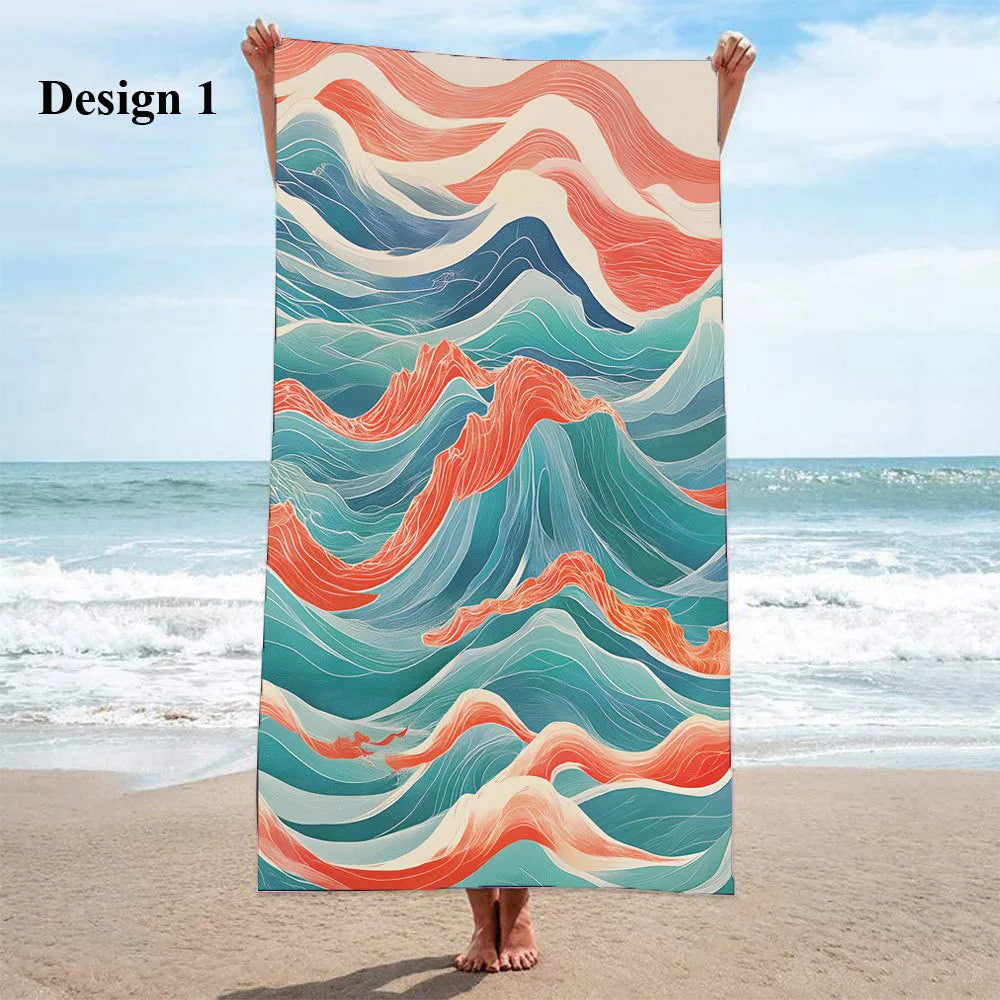 Asciugamano da spiaggia grande in microfibra con onde del mare astratte e sole