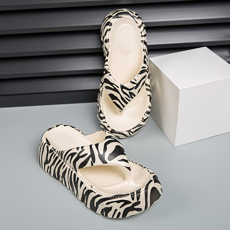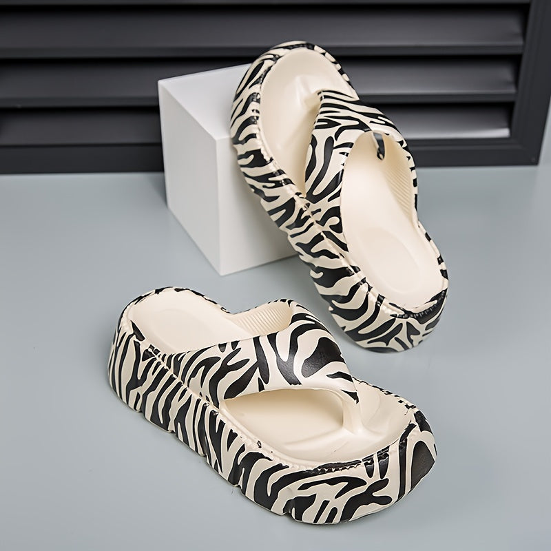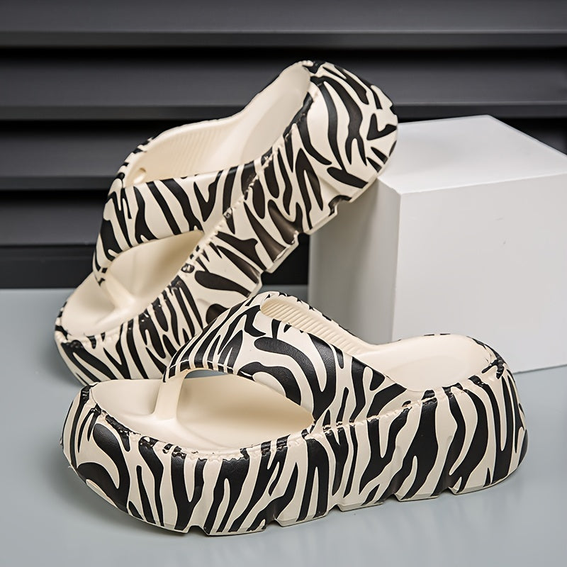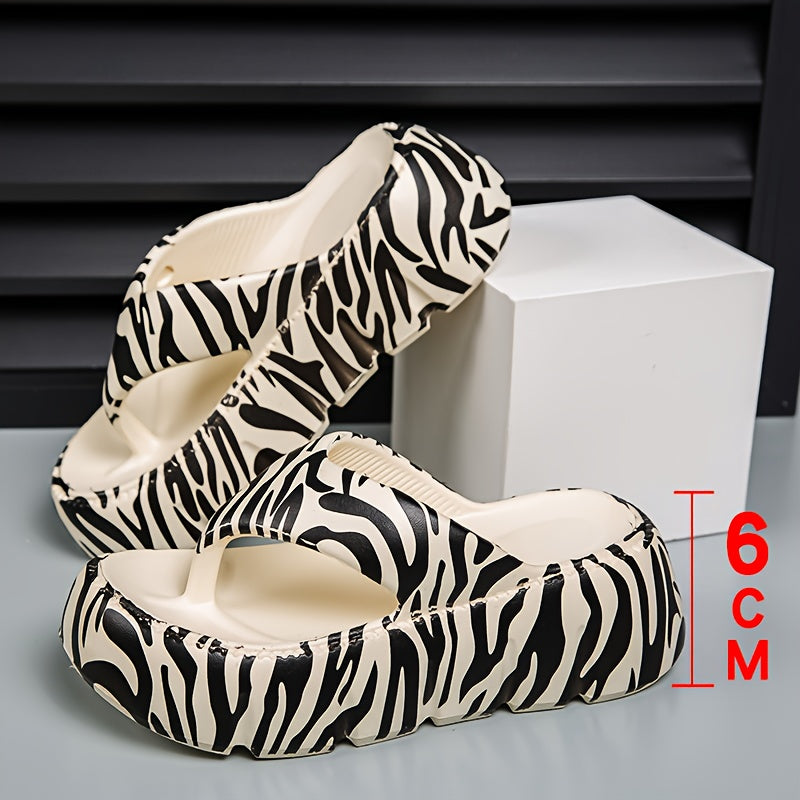 Infradito eleganti da donna con motivo zebrato,eleganti ciabatte con plateau in EVA e suola ultra morbida, rialzate e antiscivolo
