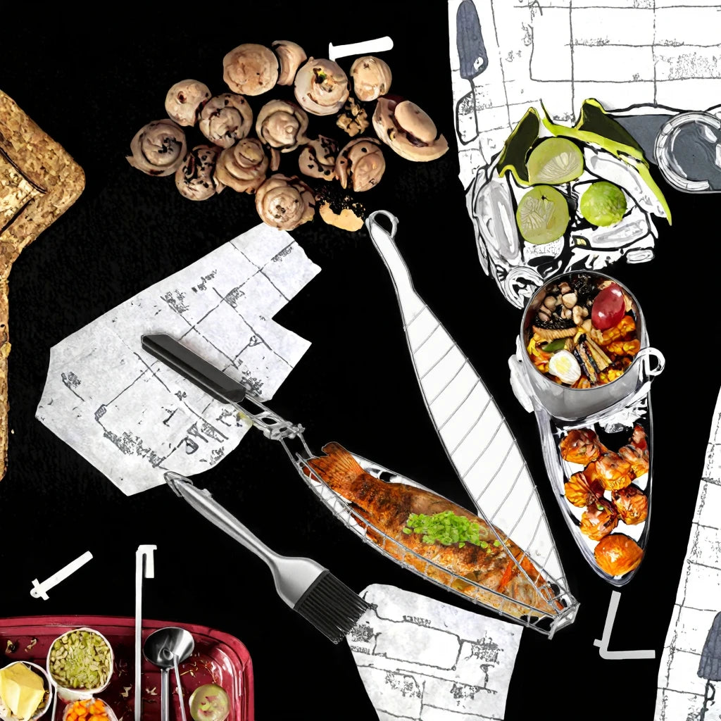 BBQ02 - Cestello per grigliare il pesce in acciaio inossidabile