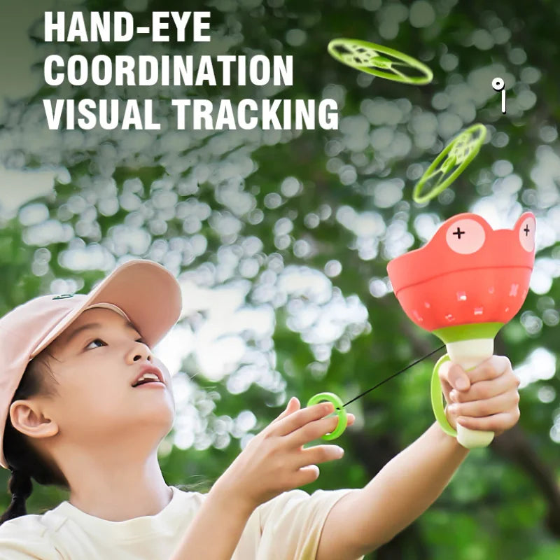Kids Flying Saucer Disc Launcher Frog Catapult Flying Toys Pull String UFO Throw Catch Outdoor Sport Children's Day Gift Boys