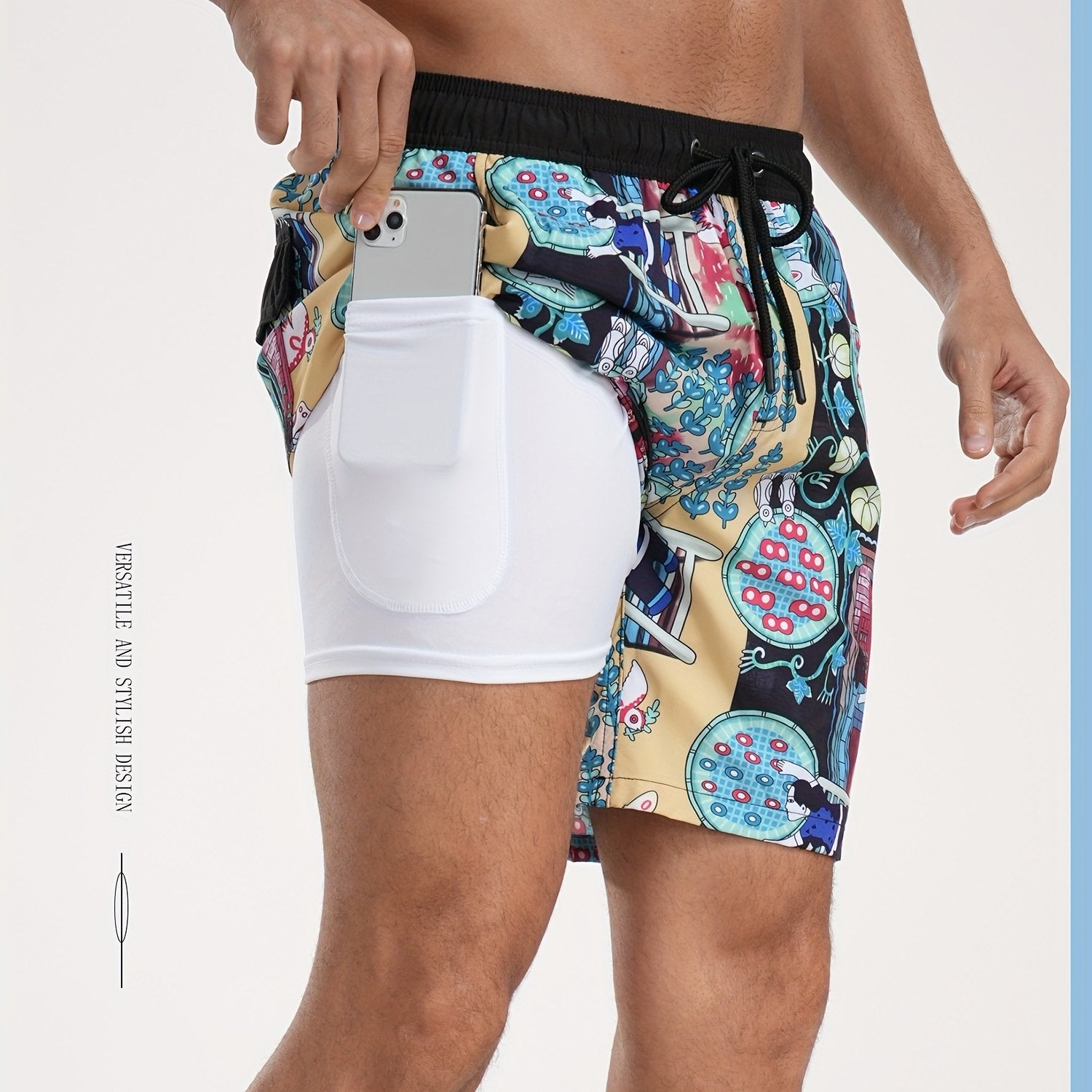 Pantaloncini da spiaggia da uomo ad asciugatura rapida con stampa di palme tropicali e foglie di palma,tessuto elasticizzato traspirante per estate
