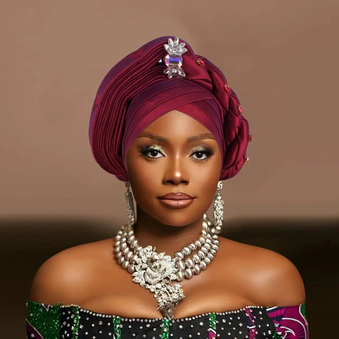 Turbante a strati intrecciati con diamanti in stile Africano