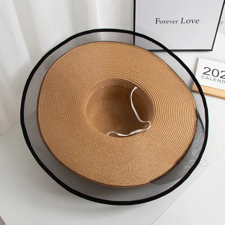 Cappello da spiaggia a tesa larga da donna, cappello da sole estivo da resort, cappello di paglia pieghevole