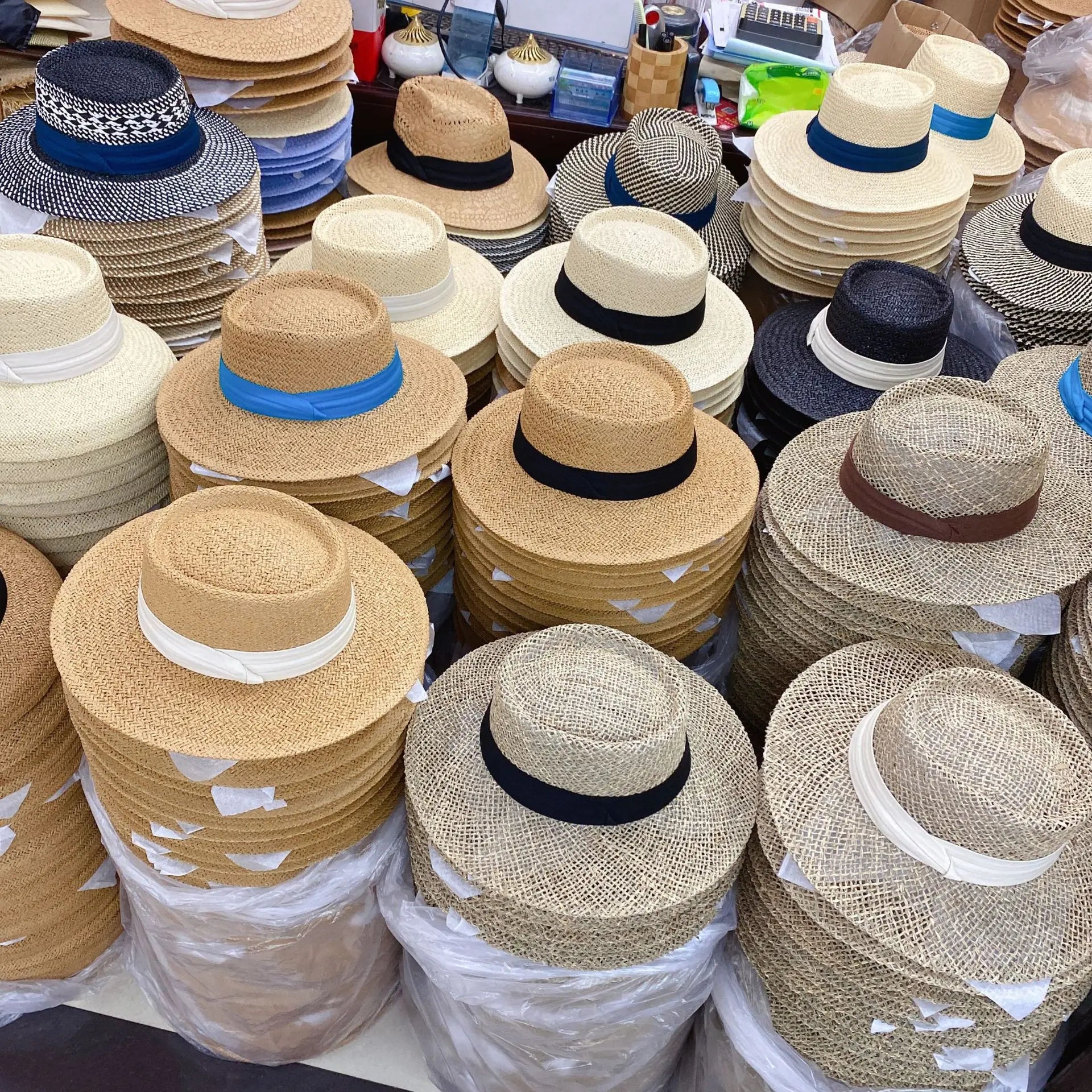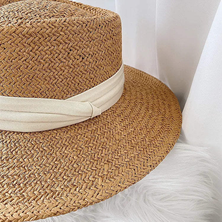 Cappello di paglia da barcaiolo con nastro da sole e spiaggia in stile retrò alla moda