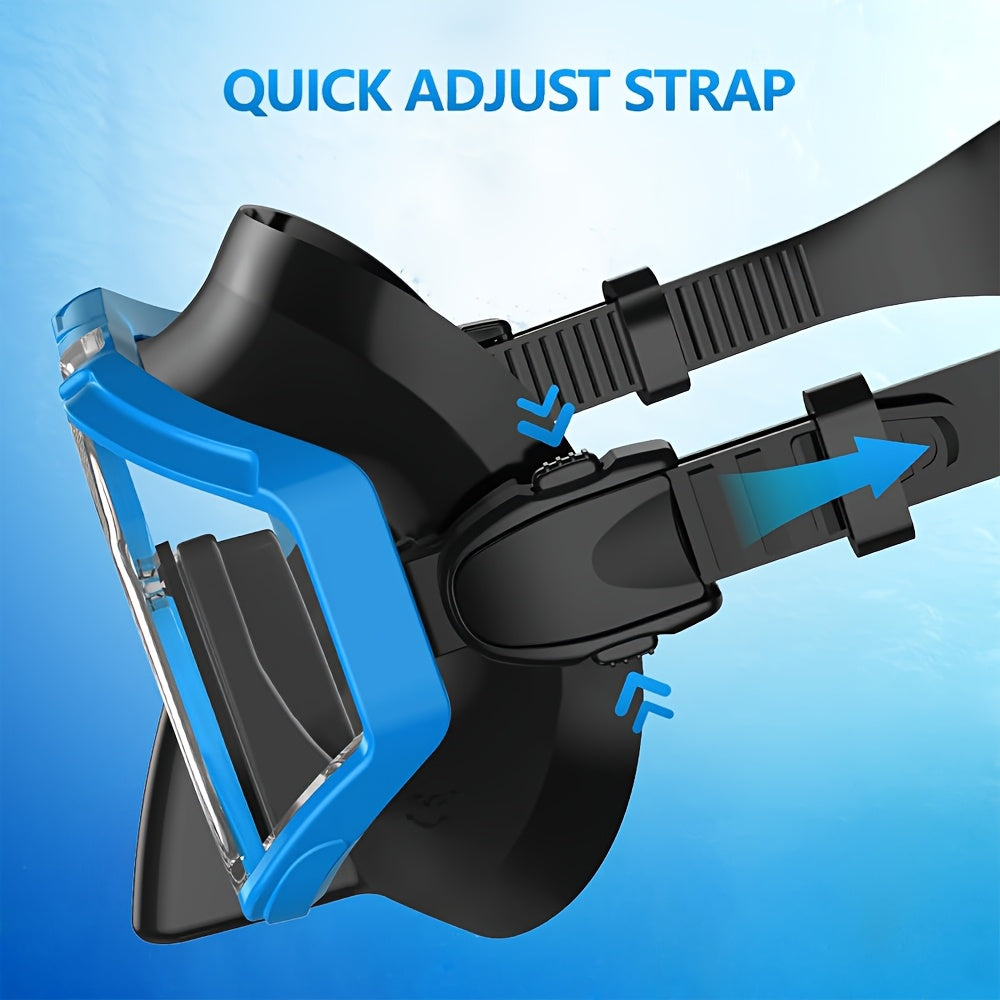 Maschera da snorkeling e tubo di respirazione per ragazzi a 3 finestre, grandangolo HD, tre lenti regolabili per bambini e adolescenti